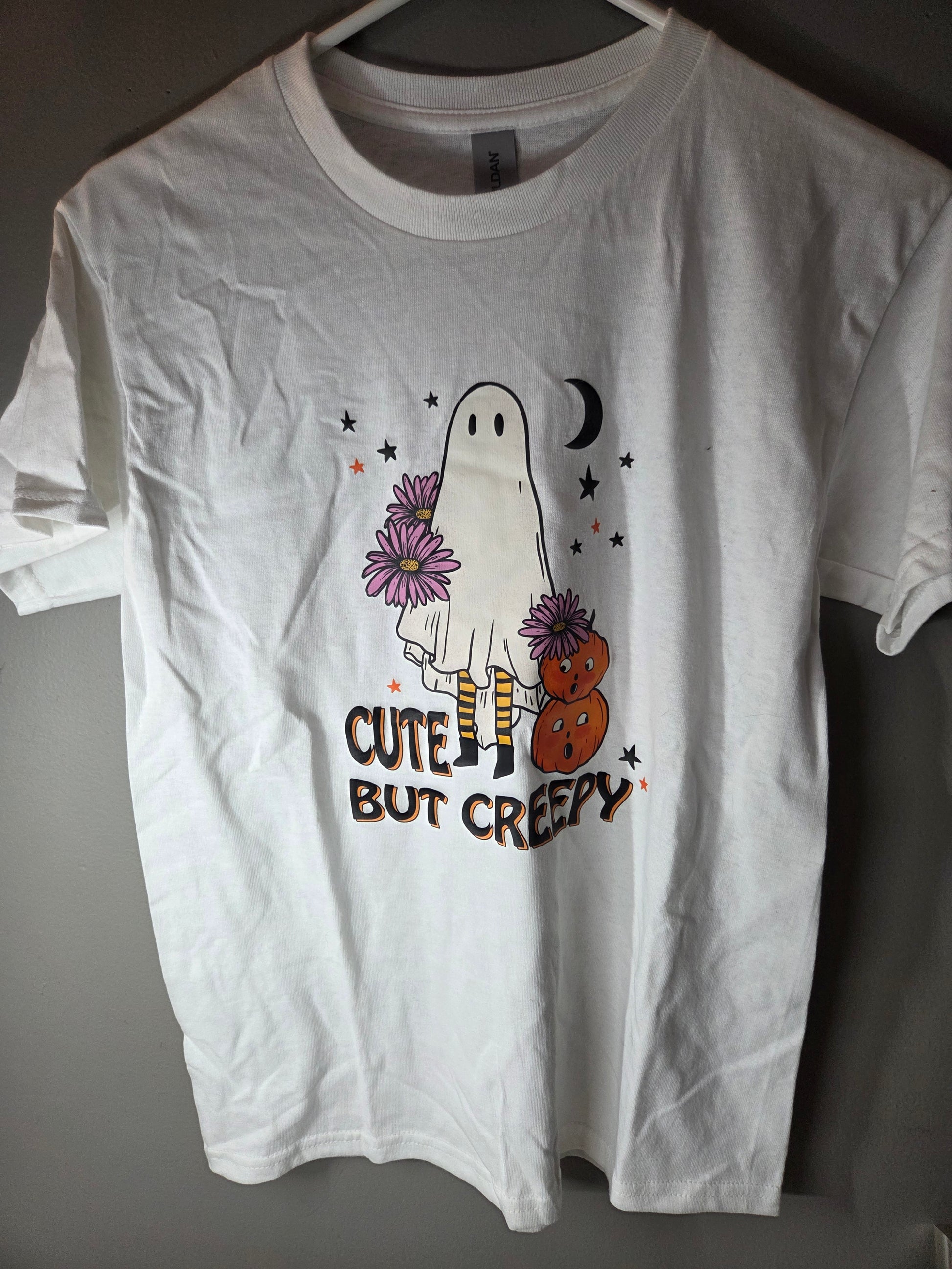 Bring some spooky fun to your little one’s wardrobe with this cute but creepy kids’ short sleeve t-shirt. Featuring a playful Halloween vibe, it’s perfect for trick-or-treating or everyday wear during the season. Soft, comfortable fabric keeps kids happy while the quirky design adds just the right touch of eerie charm to their outfit.