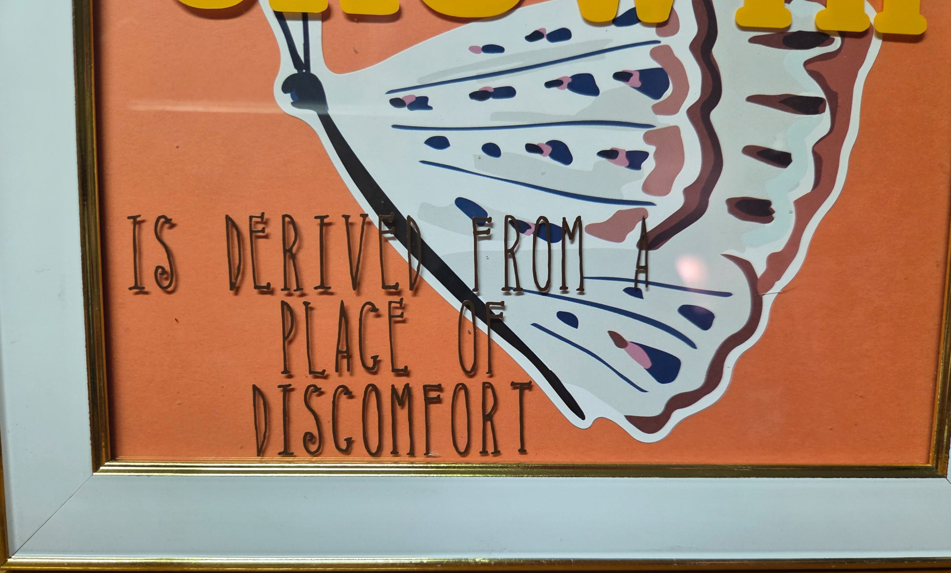 Elevate your space with this elegant 5"x7" gold picture frame, featuring a delicate butterfly design and the inspiring phrase, "Growth is derived from a place of discomfort." Its refined finish adds a touch of sophistication, making it a meaningful accent that encourages reflection and resilience. Perfect for showcasing your cherished memories or motivational moments with style.