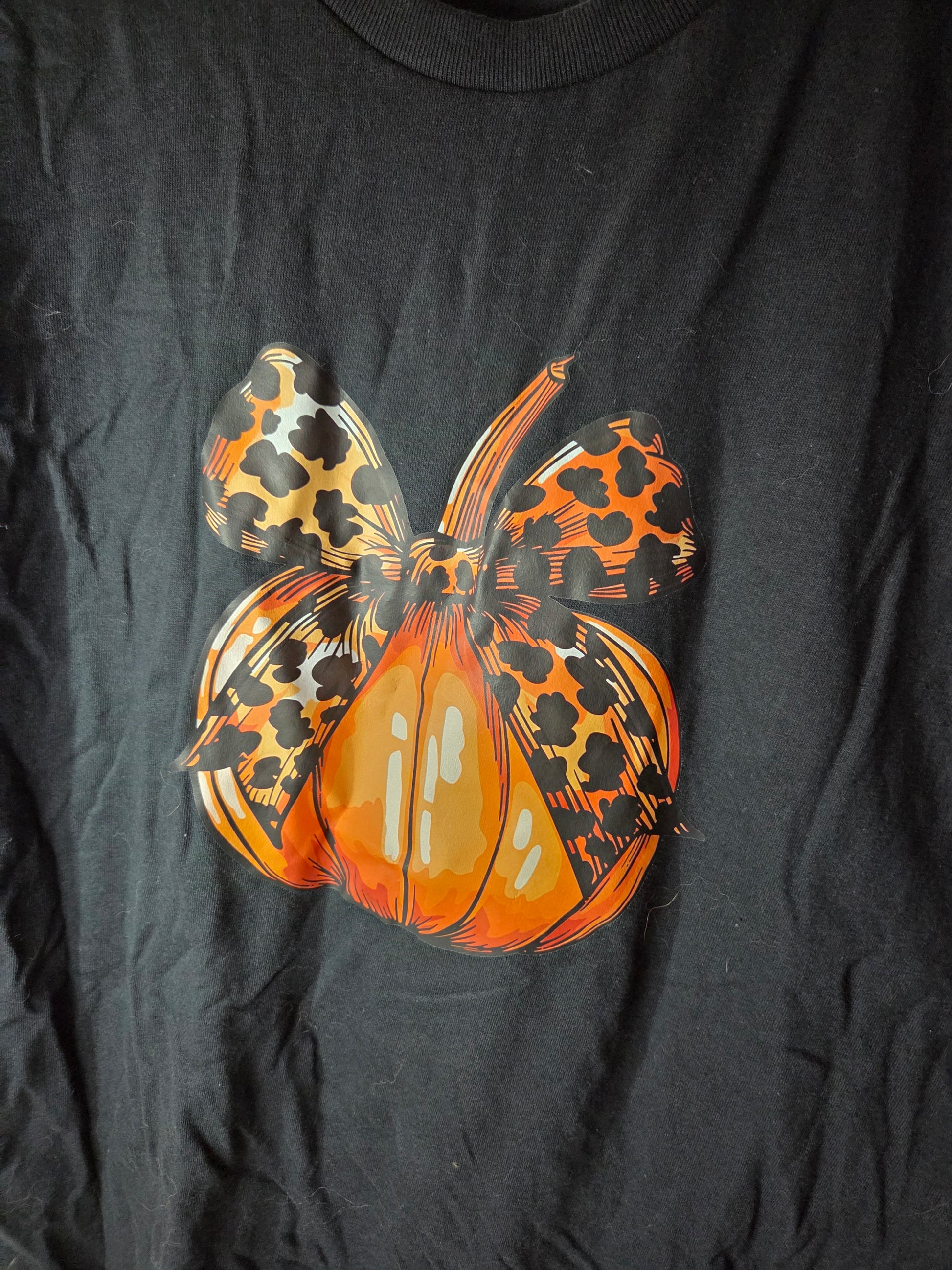 Celebrate fall with a playful twist wearing this short sleeve t-shirt featuring a charming pumpkin adorned with a bold leopard print bow. Perfect for cozy autumn days, it adds a fun, stylish touch to your seasonal wardrobe while keeping comfort front and center.